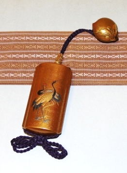 しかし長すぎるのも間が抜けてしまいますし、根付がぶらぶらして、印籠を傷つける恐れもあります。博多帯の幅に若干の余裕をみて、