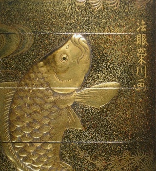 狩野典信下絵・飯塚桃葉作「鯉蒔絵料紙箱」