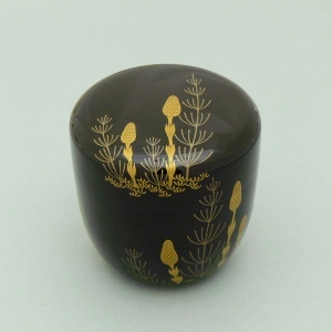黒蝋色塗地に土筆を高蒔絵した中棗です。